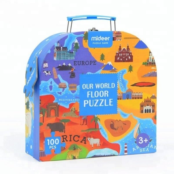 世界地図がイラストになった100ピースパズル。