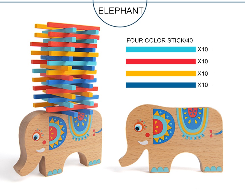 ゾウさんのバランスゲーム。スティックを上手に積み上げてゆこう。シンプルだけど面白いゲームです。スティック色分け遊びなども。サイズ:約17×17×5㎝素材:ビーチ生産国:中国