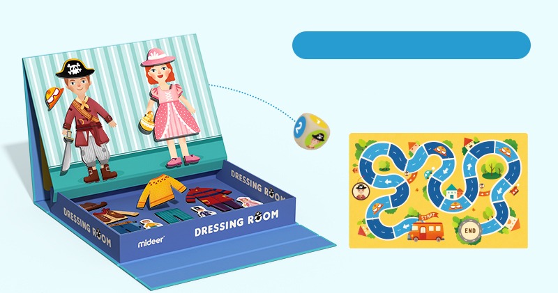 パーツを組み合わせて着せ替えができるマグネット絵合わせパズル。