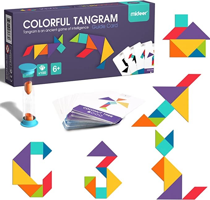 動物や数字、アルファベットがお題になった50枚のカードを見ながら、同じものをつくるタングラム。お子さまから大人まで楽しめます。